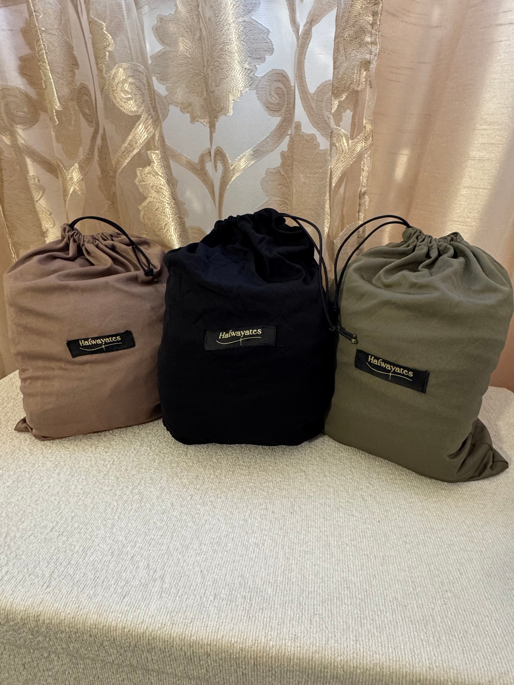 Tenue de prière fluide et couvrante, composée d'un khimar et d'une jupe. Livré avec son sac de transport intégré, pratique au quotidien comme en voyage.