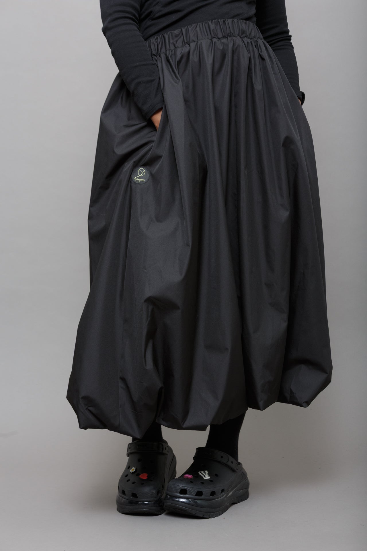Jupe longue en tissu imperméable, avec doublure intégrée. Taille élastique, coupe couvrante et confortable.